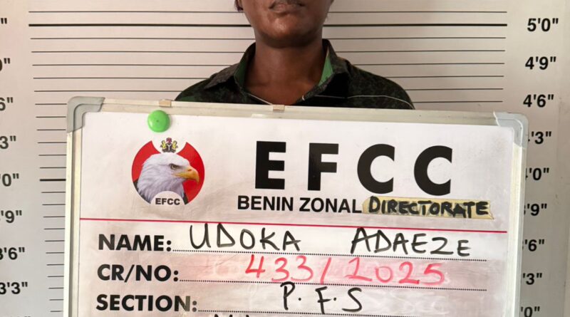 Read MoreThe Economic and Financial Crimes Commission (EFCC) has arrested a 48-year-old woman, Mrs. Salt Adeaze Udoka, over an alleged ₦165